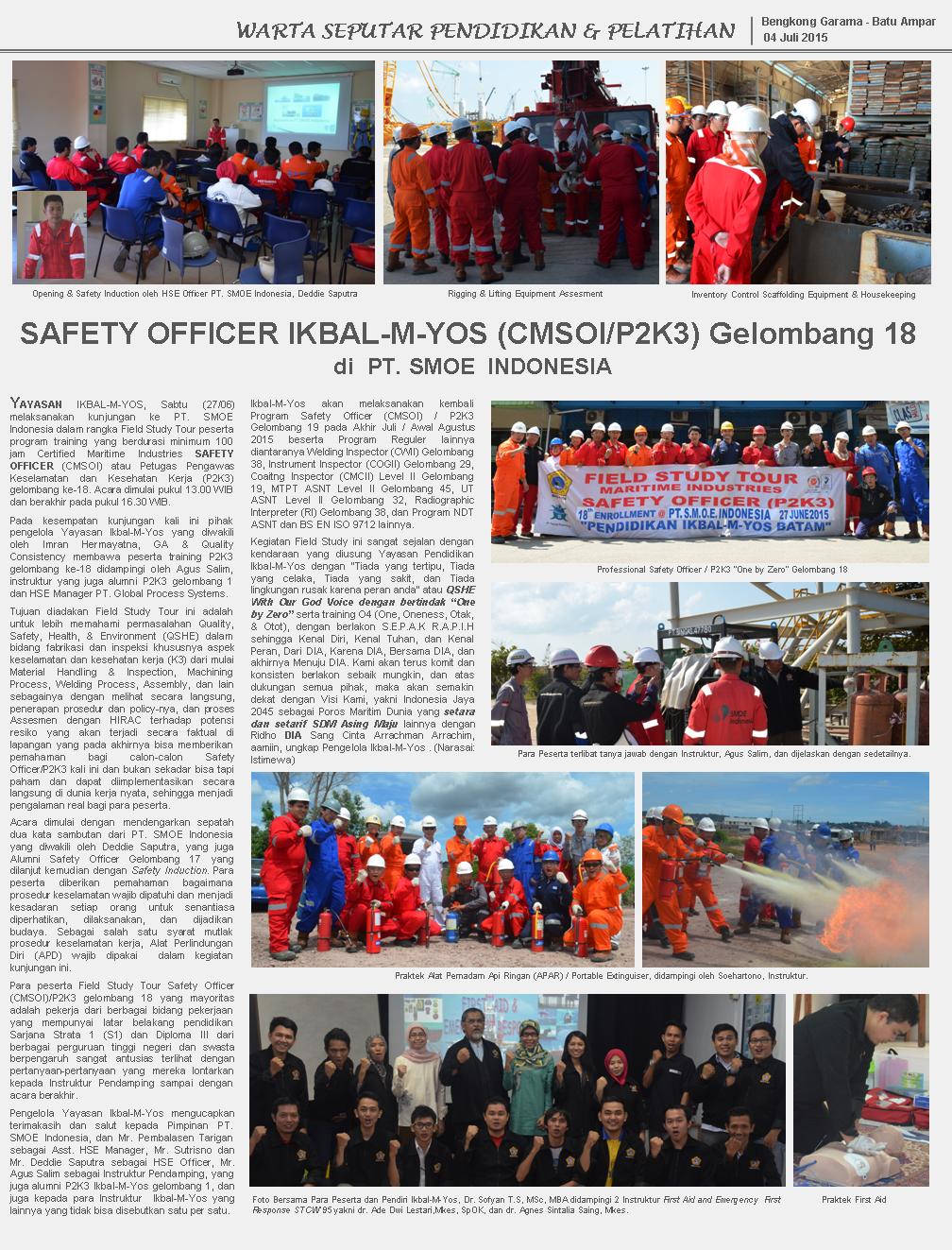 Safety Officer (CMSOI) /P2K3 Gelombang 18 di PT. SMOE Indonesia