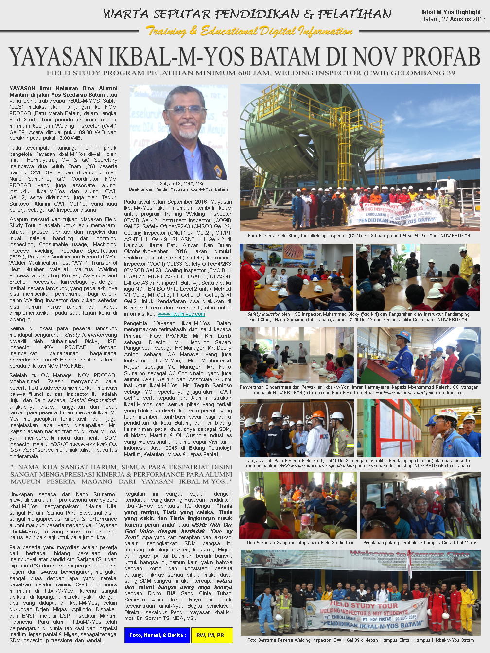 Field Study Welding Inspector (CWII) 39 @NOV PROFAB