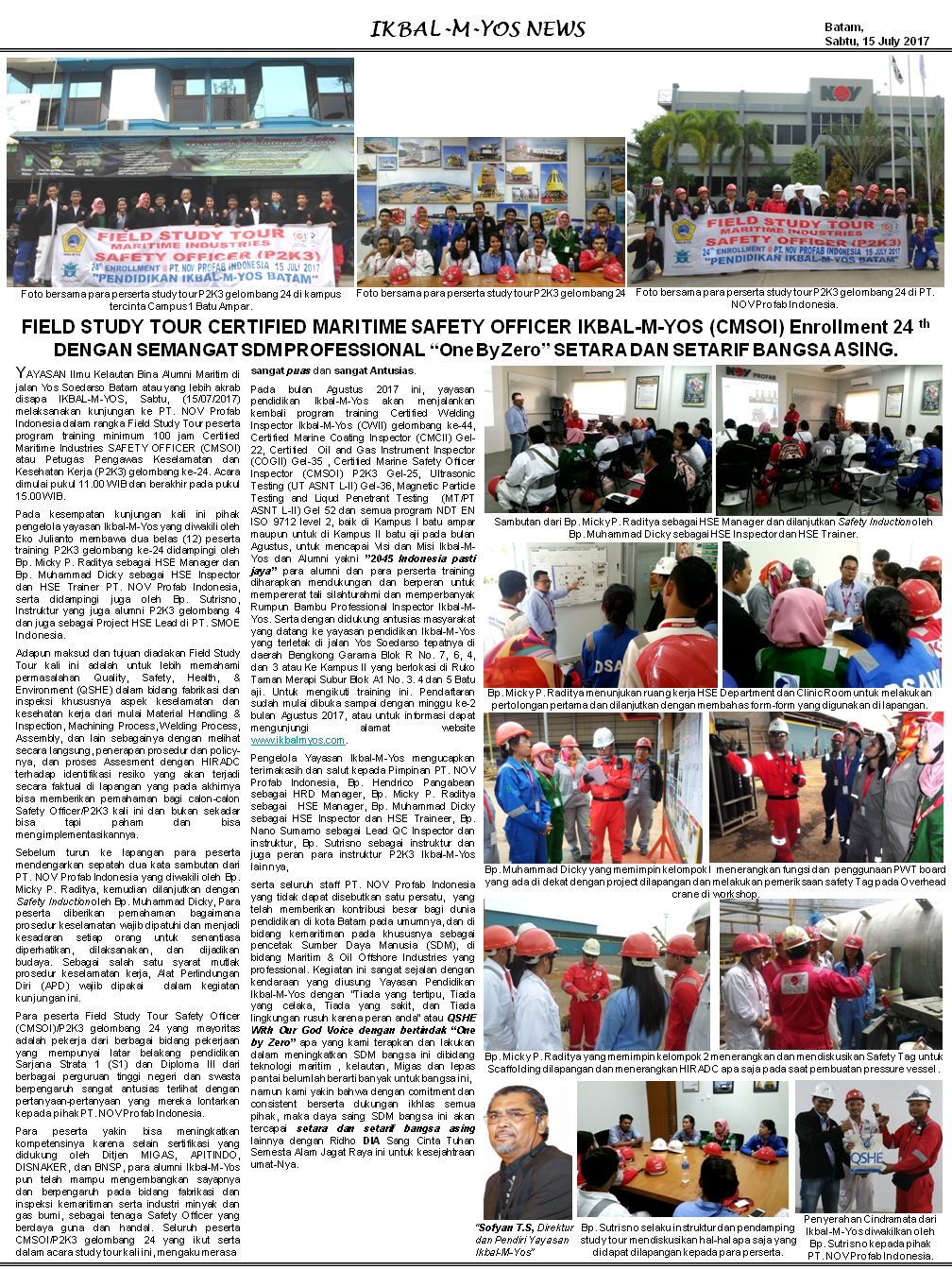 Kunjungan Industri CMSOI/P2K3 24 di PT. NOV Profab Indonesia