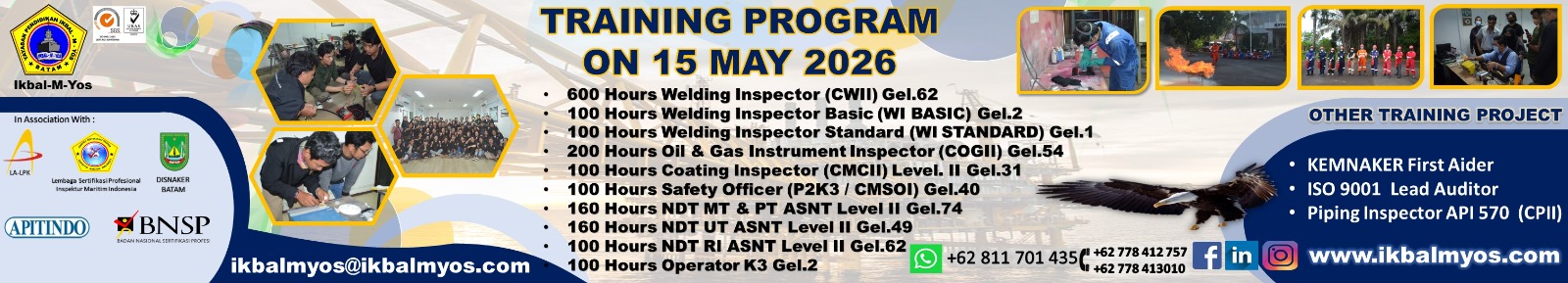 We proudly present "Your Partner for Valuable HRD" in Maritime World. Pendidikan IKBAL-M-YOS is a professional maritime school and trainings founded in 2000's is trying to answer the challenges on today's or even tomorrow needs, by preparing a professional well skilled capability in order to achieve the 21 st century business competition and also building great responsibility spirit in their soul. we are honestly concerned with your company's human resource development